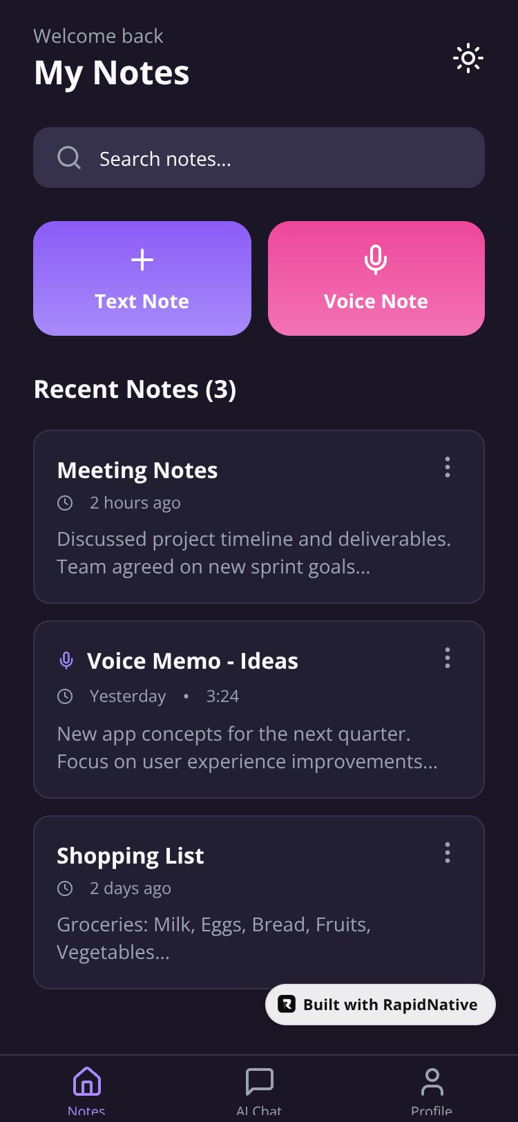 Browse this public project and clone it to start building your own React Native NoteMind AI app.