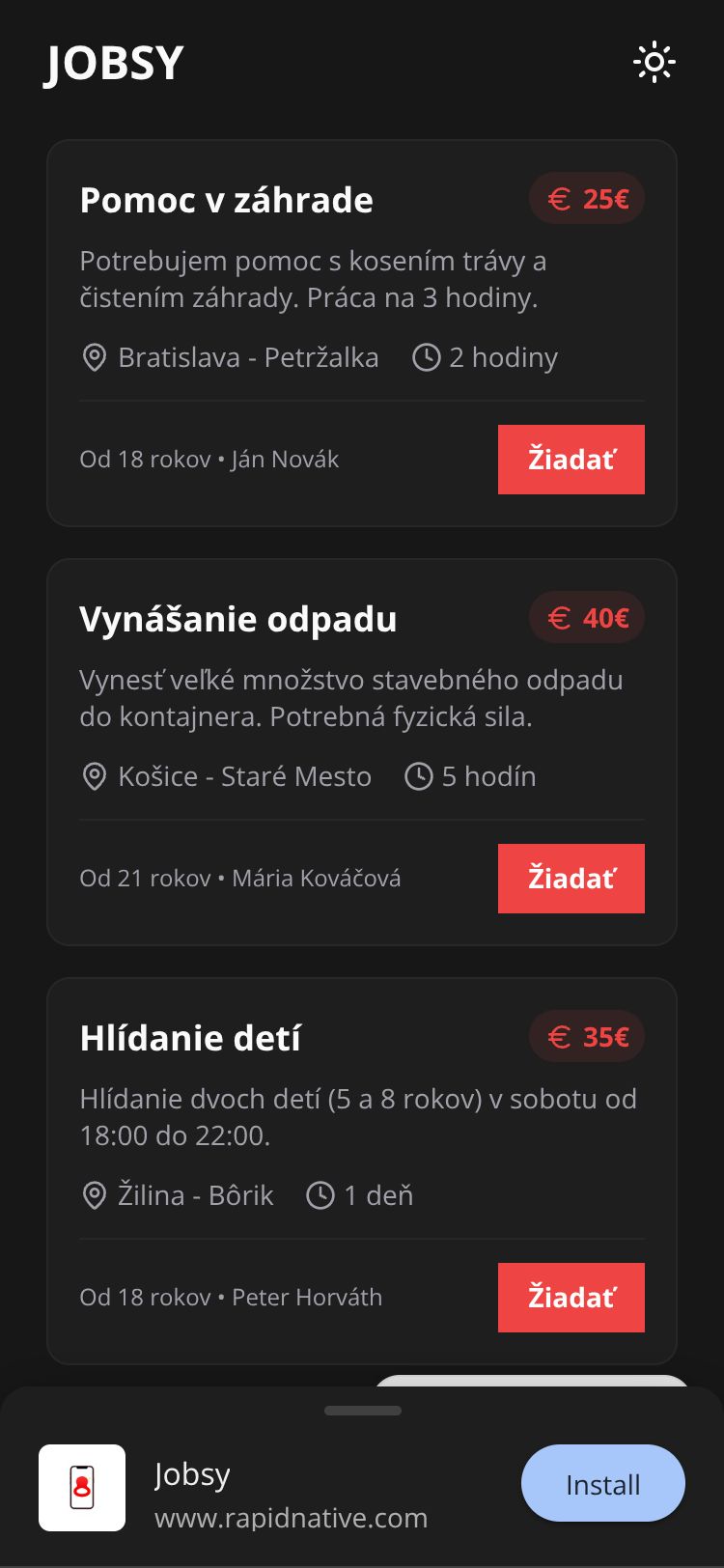 Marketplace pre rýchle práce a brigády s platbou v eurách. Nájdite si prácu, získajte hodnotenie a zarábajte.