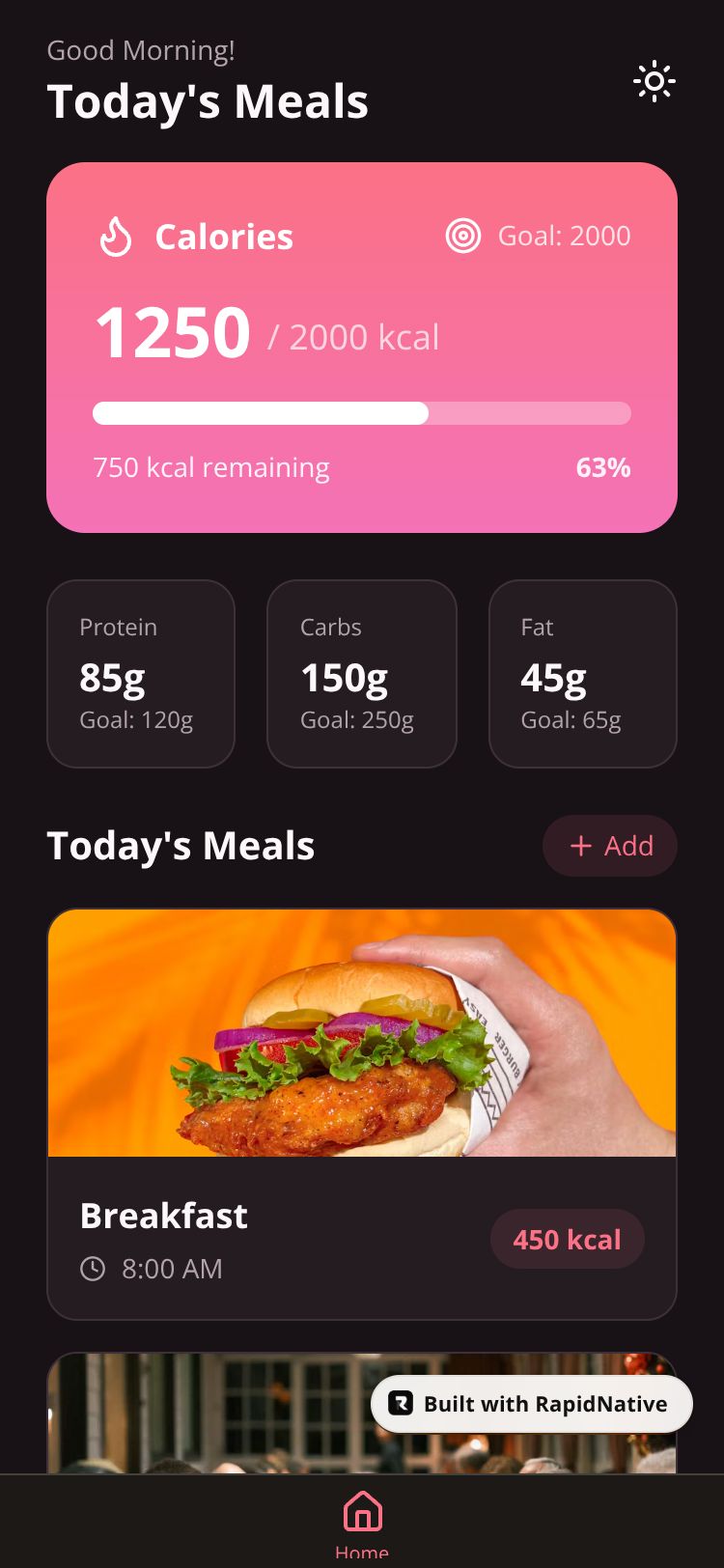Track your daily meals and nutrition with ease. Log breakfast, lunch, dinner, and snacks while monitoring your calorie intake and macros.
