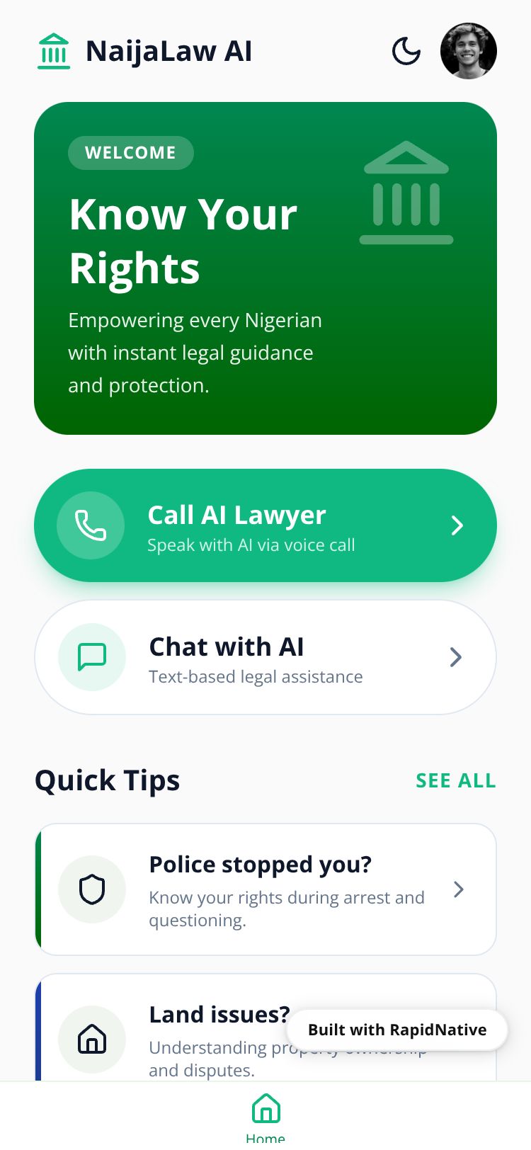 Browse this public project and clone it to start building your own React Native NaijaLaw AI app.
