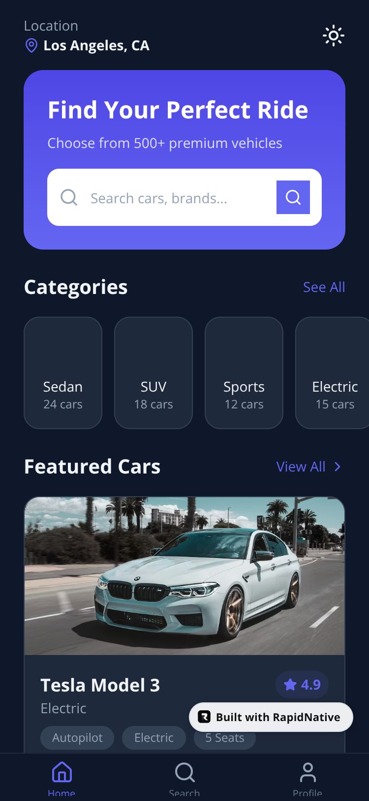 A modern car rental app for finding, comparing, and booking vehicles. Browse a wide selection of cars, manage bookings, and enjoy seamless travel experiences.