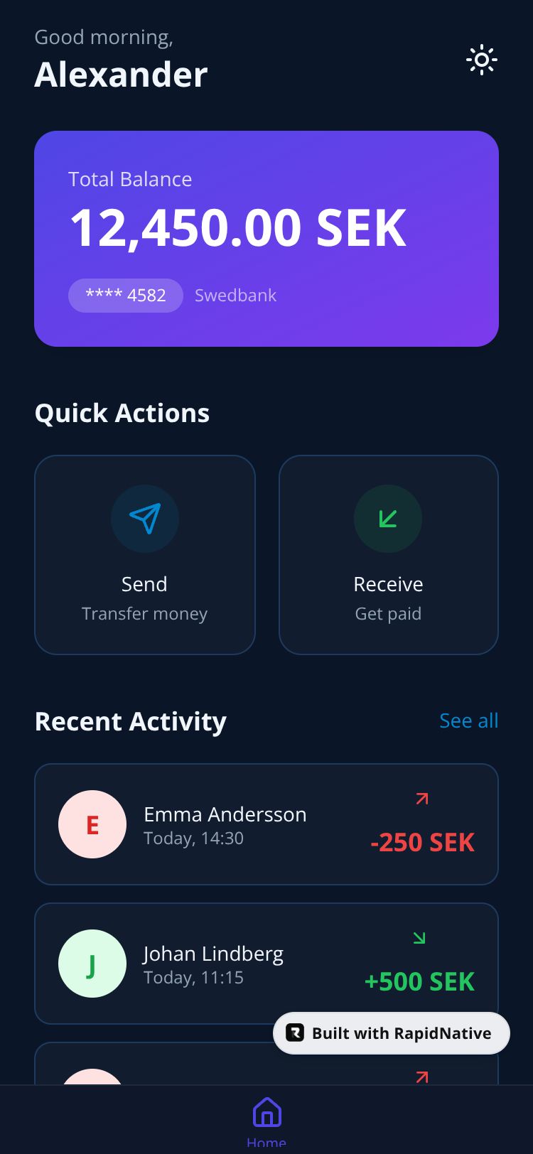 Instant peer-to-peer money transfer app. Send and receive money securely using phone numbers with bank authentication.