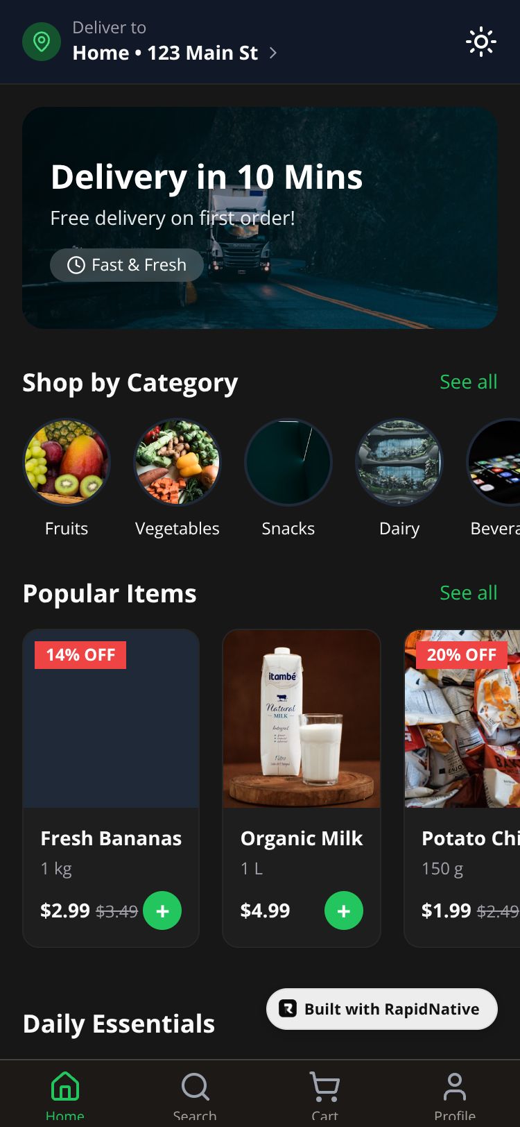 A quick-commerce platform for groceries and essentials with rapid delivery tracking.