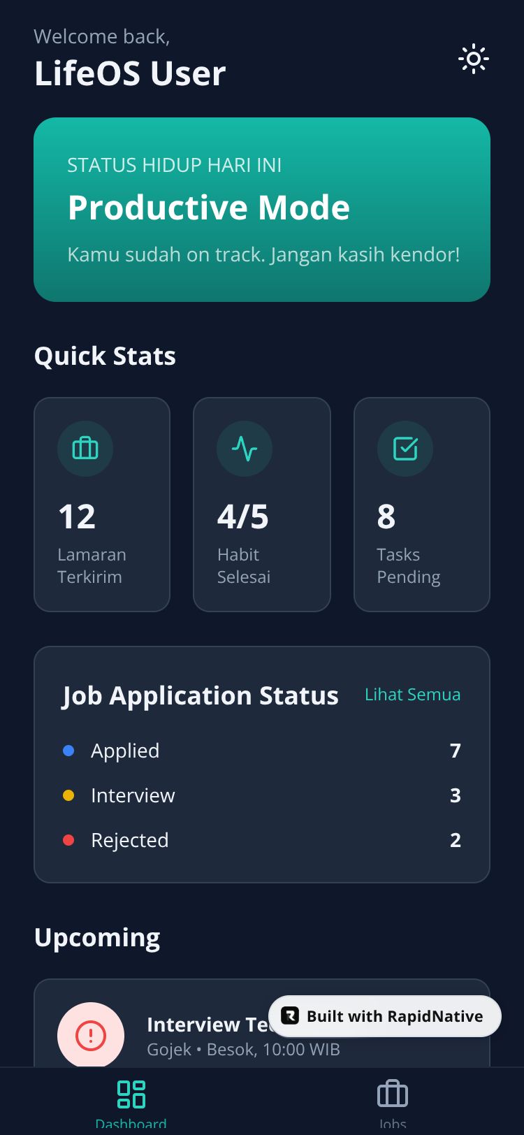 Personal Life Operating System dashboard untuk tracking lamaran kerja, kebiasaan harian, dan tugas pribadi.