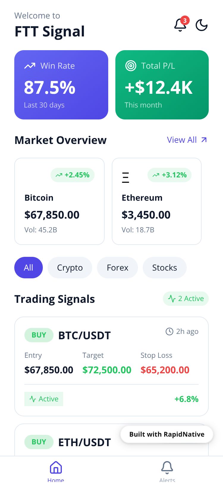 Professional trading signal app with real-time market alerts, portfolio tracking, and expert analysis for informed trading decisions.