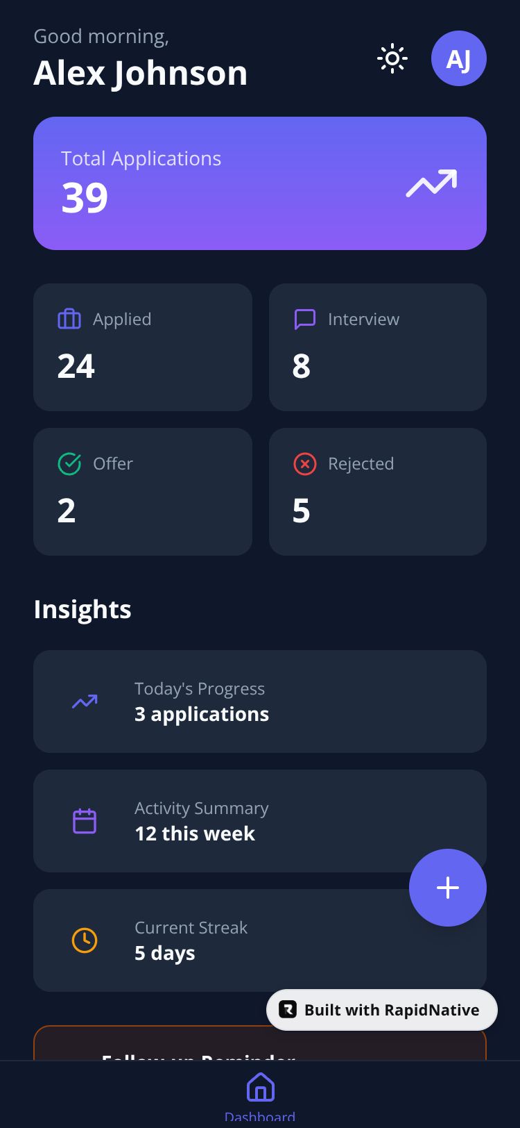 A comprehensive job application tracker with AI-powered resume analysis, insights, and follow-up reminders to help you land your dream job.