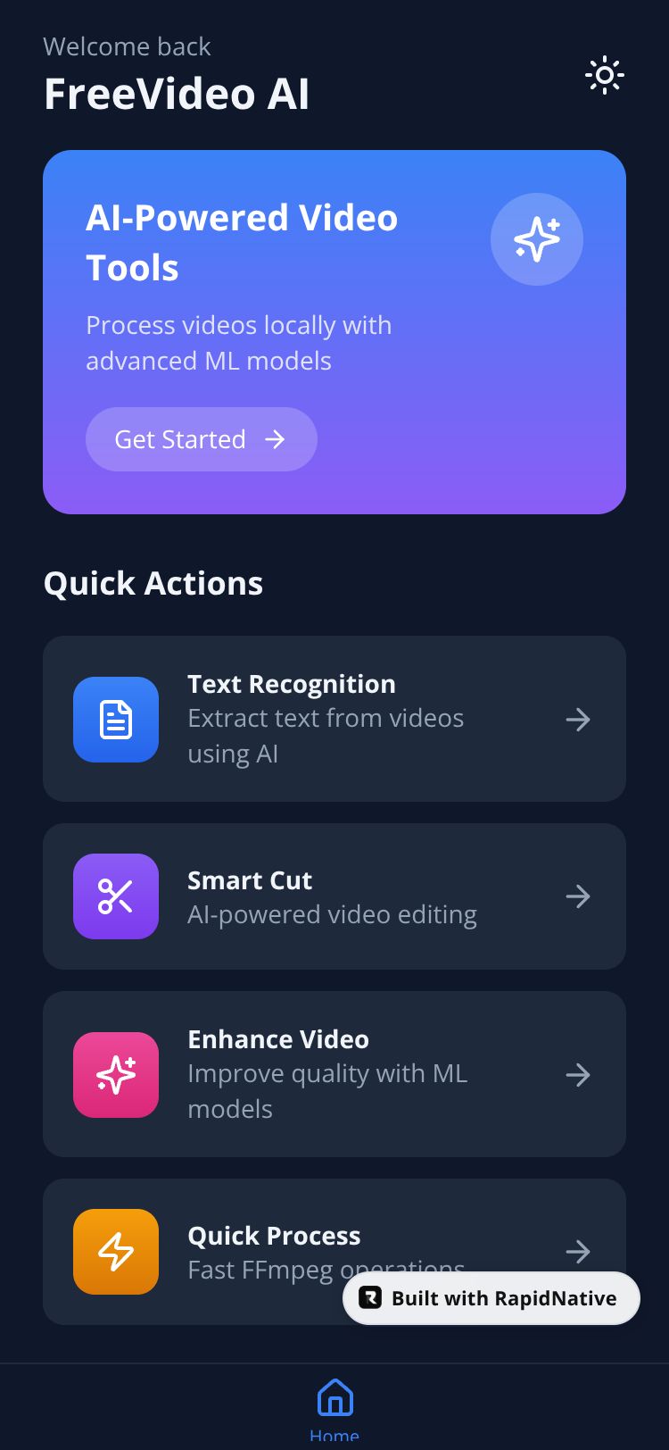 Browse this public project and clone it to start building your own React Native FreeVideo AI app.