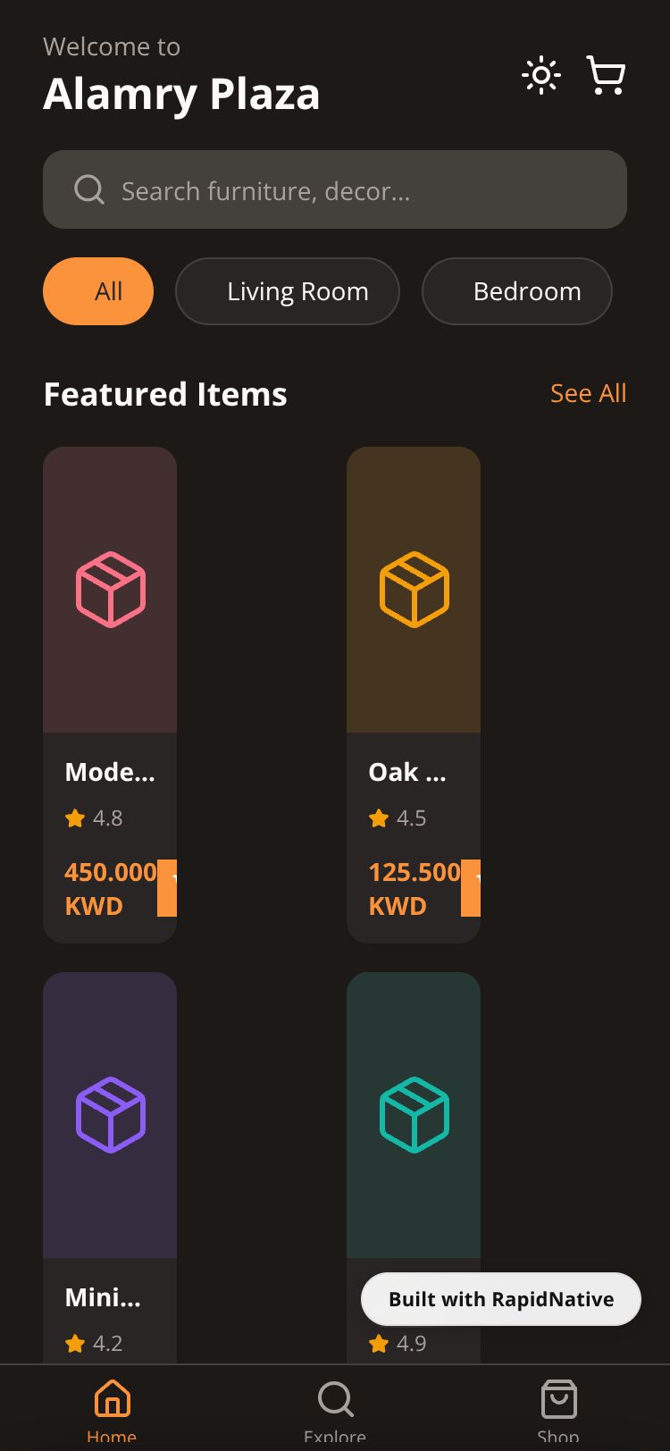 Browse this public project and clone it to start building your own React Native Interiorly app.