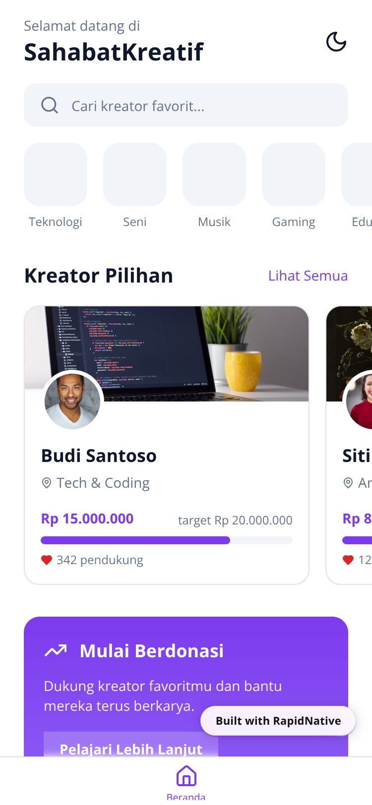 Browse this public project and clone it to start building your own React Native SahabatKreatif app.