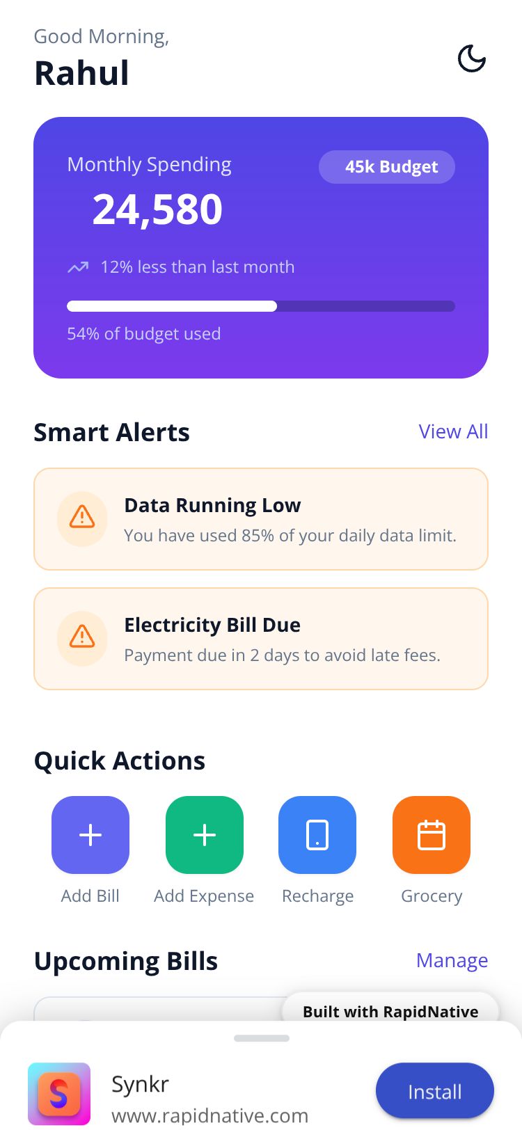 React Native Synkr App Preview