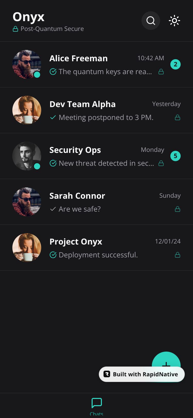 Browse this public project and clone it to start building your own React Native Onyx Secure app.