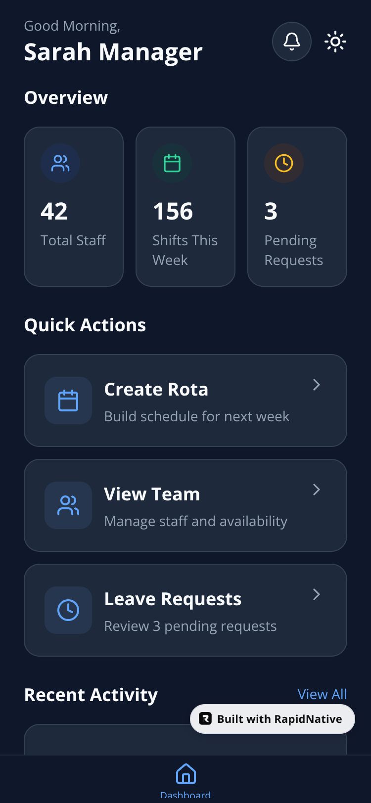 A comprehensive workforce management and scheduling system for managers to create rotas, track shifts, and manage team leave requests efficiently.