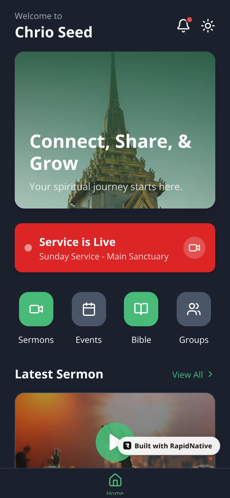 Connect, share, and grow your world. A spiritual community app featuring sermons, devotionals, live streams, and fellowship.