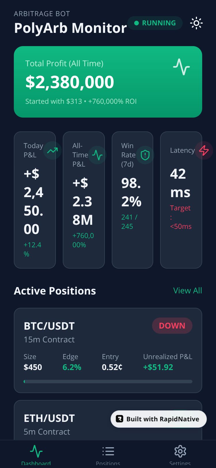 React Native PolyArb Monitor App Preview