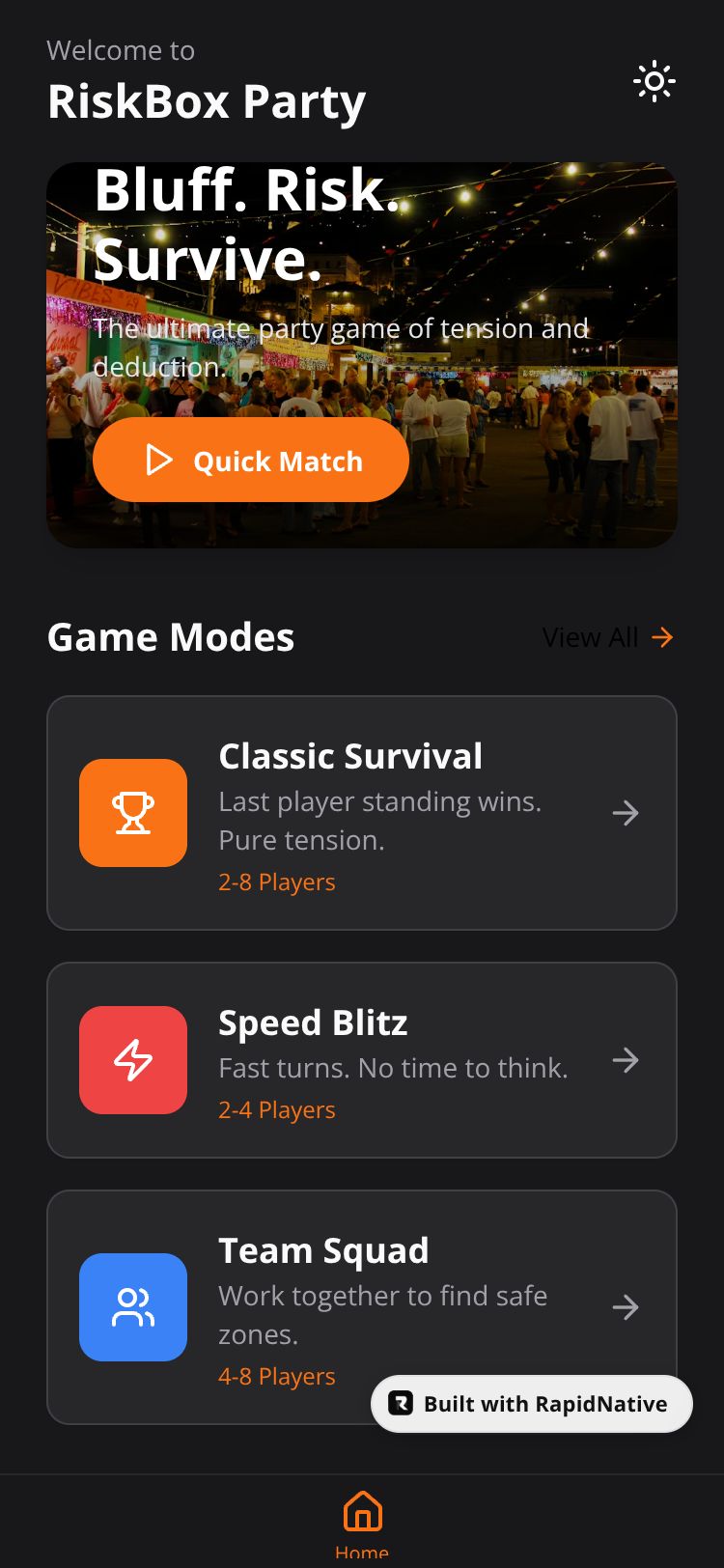 Browse this public project and clone it to start building your own React Native RiskBox Party app.
