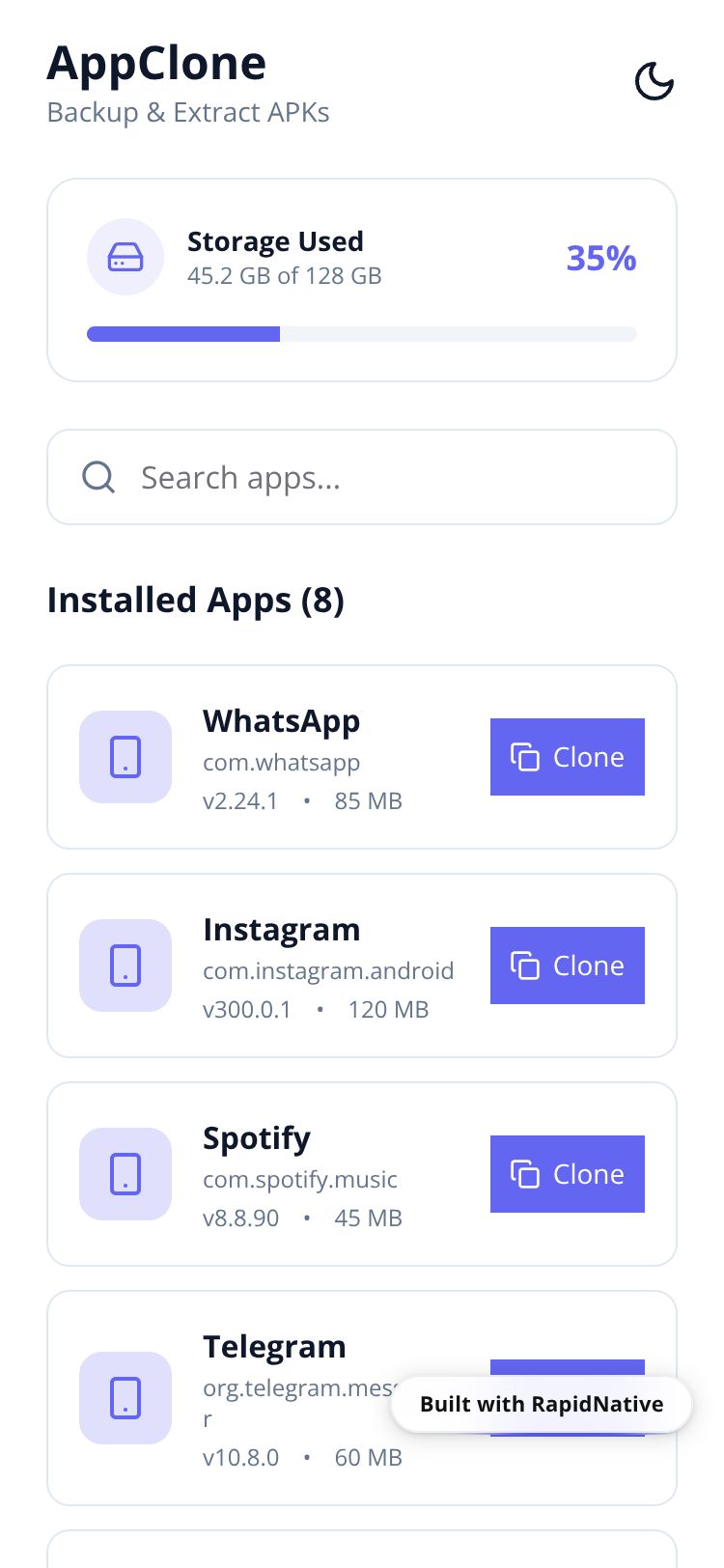 A powerful tool to backup, clone, and manage your installed Android applications directly from your device.