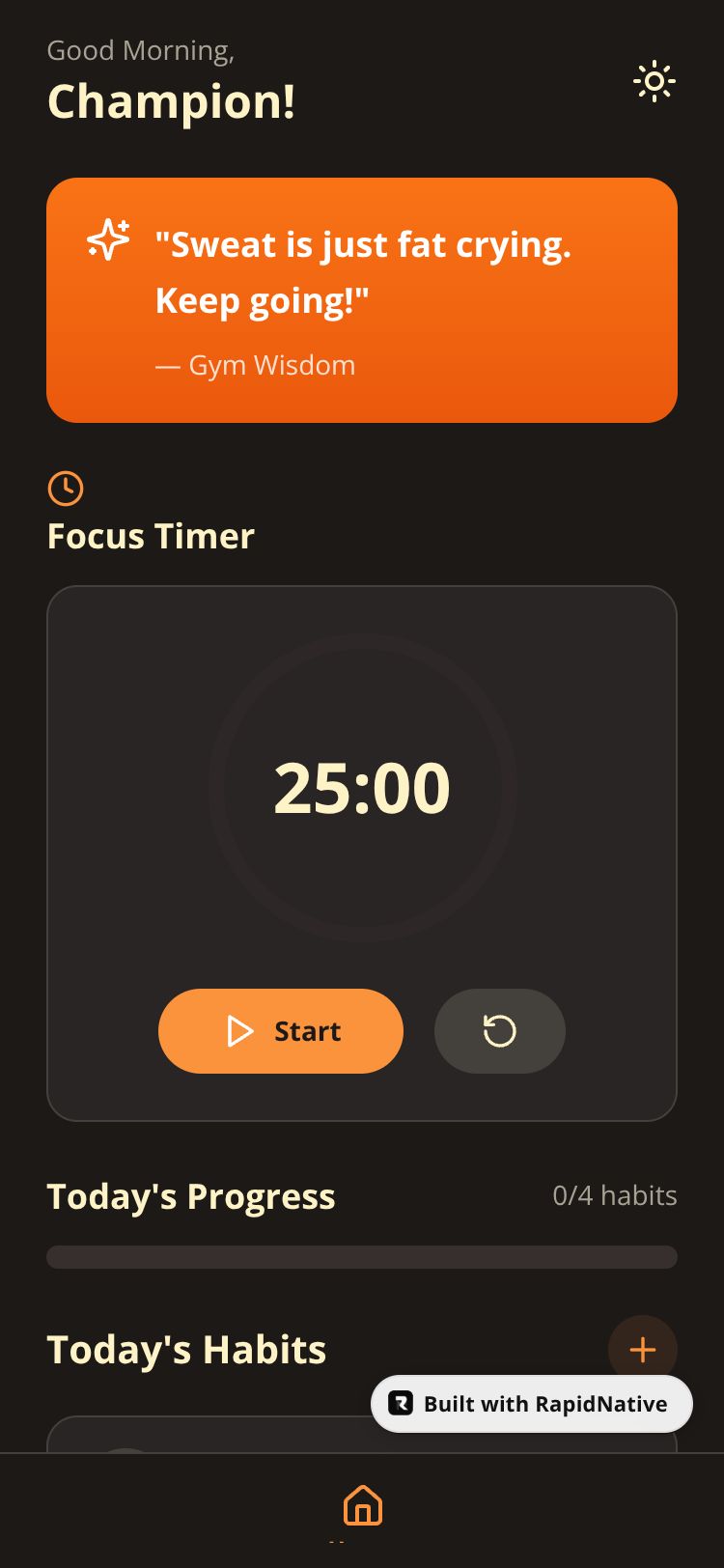 A comprehensive habit tracker with daily goals, weekly targets, friend competition, and detailed analytics for tracking workouts, water intake, and more.