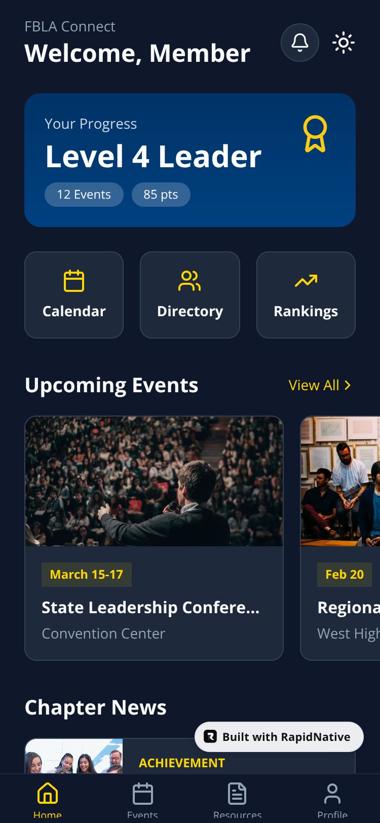 React Native FBLA Connect App Preview