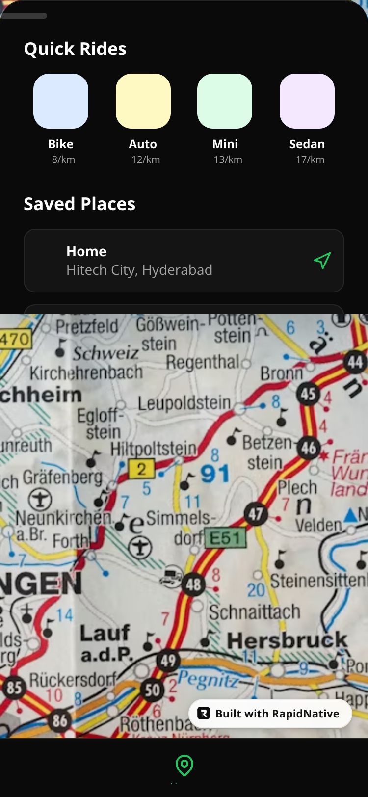 Premium ride-hailing service exclusively for Hyderabad. Fast booking, cash payments, and safe rides with bikes, autos, and cars.
