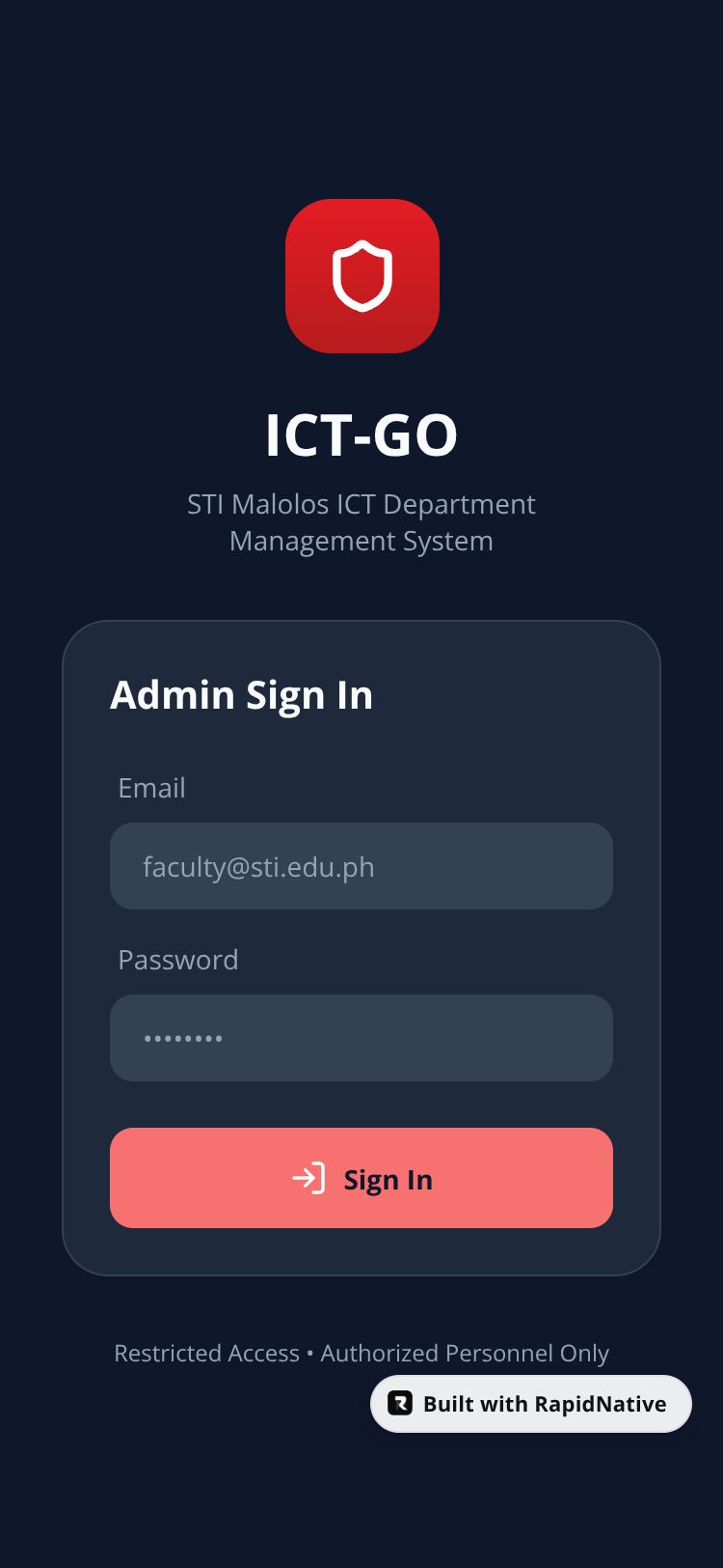 Browse this public project and clone it to start building your own React Native ICT-GO app.