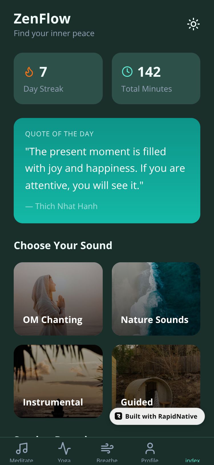 A calming meditation and yoga app with guided sessions, breathing exercises, and personalized mindfulness tracking for inner peace.