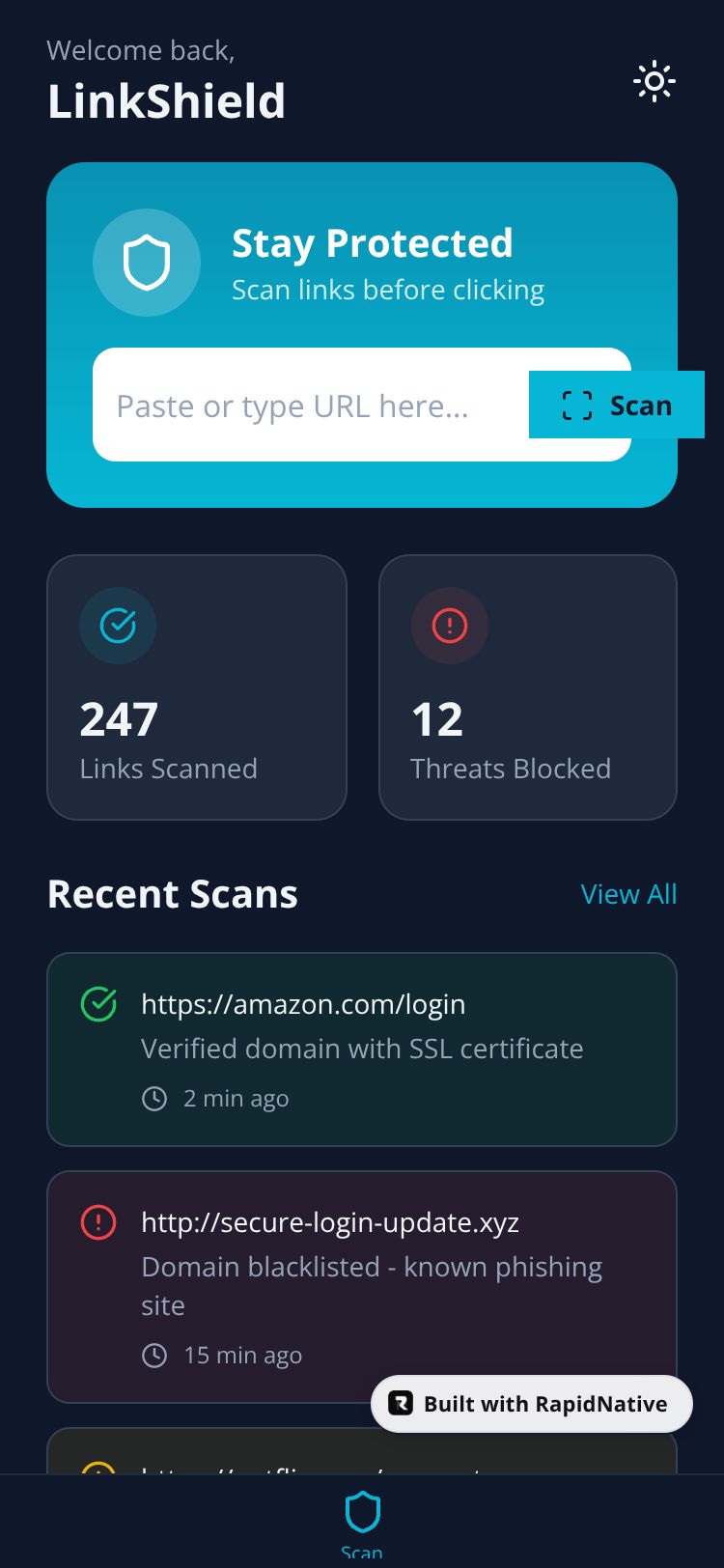 A smart link detection app that scans URLs for phishing, scams, and security threats. Protect yourself from dangerous links with real-time AI-powered analysis.