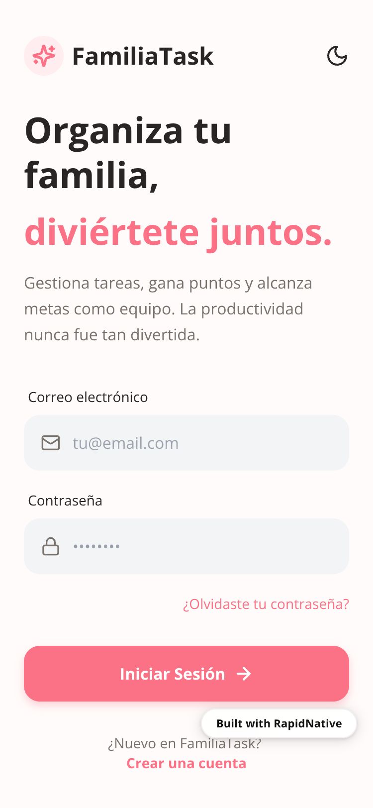 App de tareas gamificada para familias y equipos pequeños. Gestiona tareas, puntos, rachas y recompensas de forma divertida y motivadora.