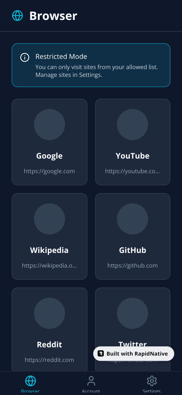 Browse this public project and clone it to start building your own React Native TabFlow Browser app.