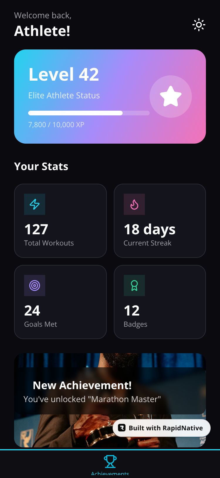 Track your sports achievements with a stunning neon interface. Monitor progress, unlock badges, and celebrate your fitness journey in style.