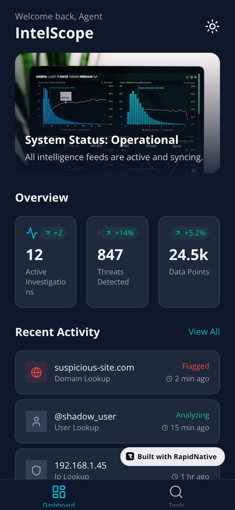 Browse this public project and clone it to start building your own React Native IntelScope app.