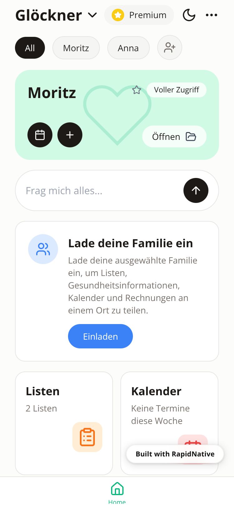 Eine moderne Familien-Organisations-App mit Kalender, Essensplaner, Aufgaben, Einkaufslisten und Abo-Tracking. Synchronisiert für die ganze Familie mit Benachrichtigungen.