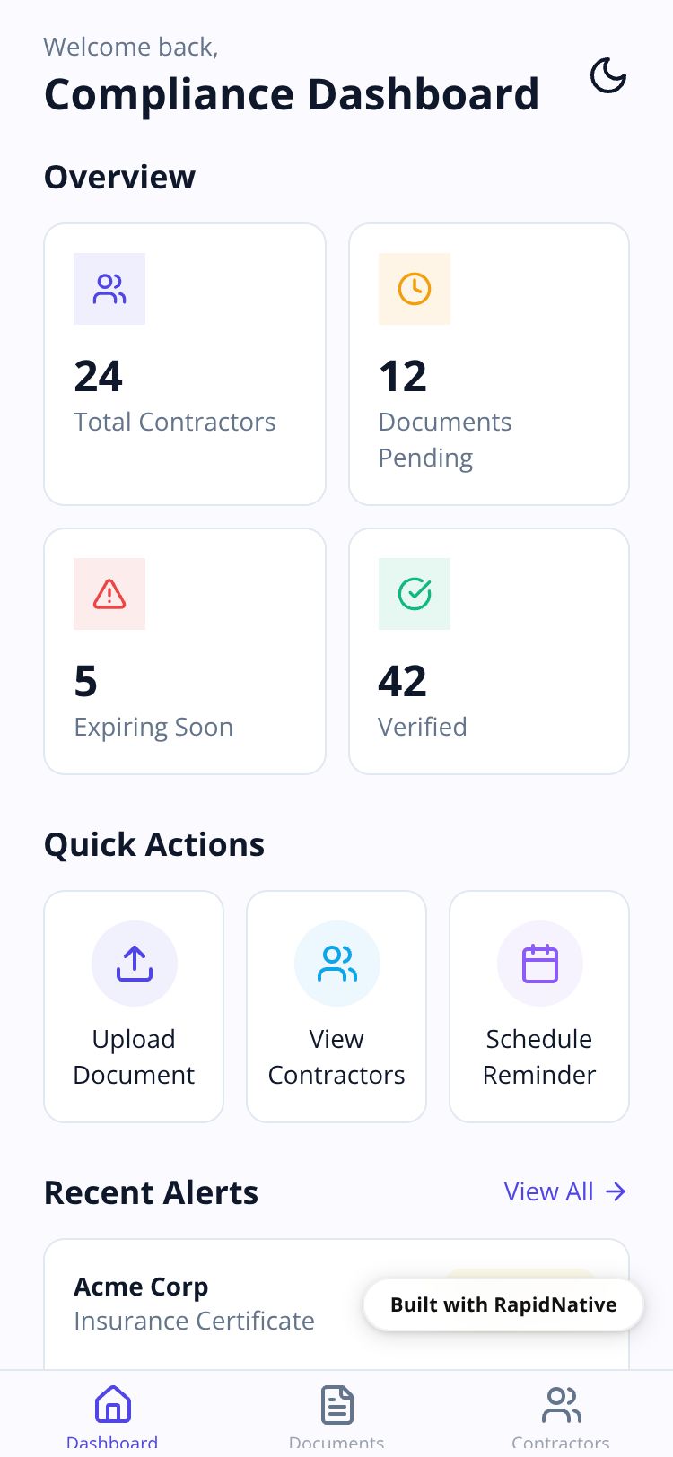 React Native ComplianceGuard App Preview