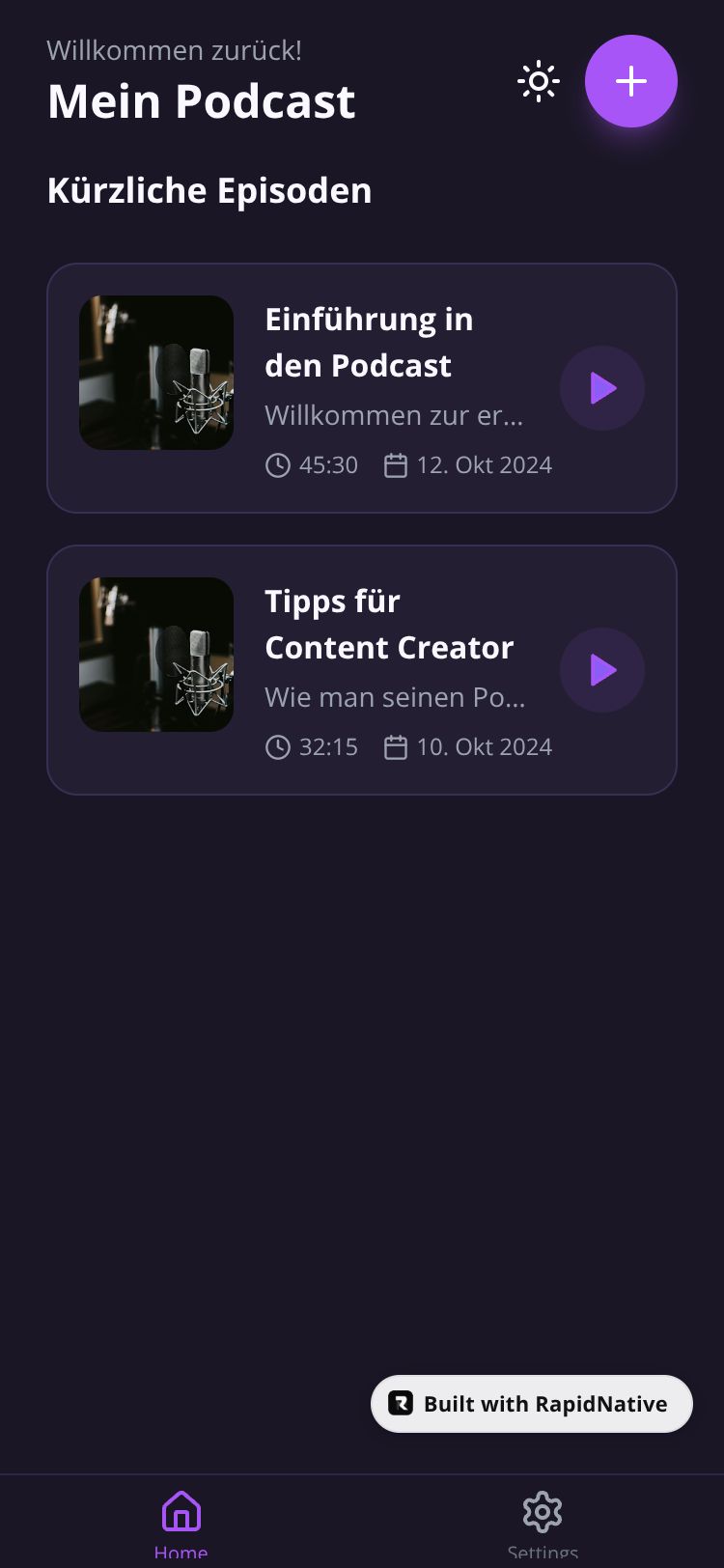 Browse this public project and clone it to start building your own React Native PodcastHub app.
