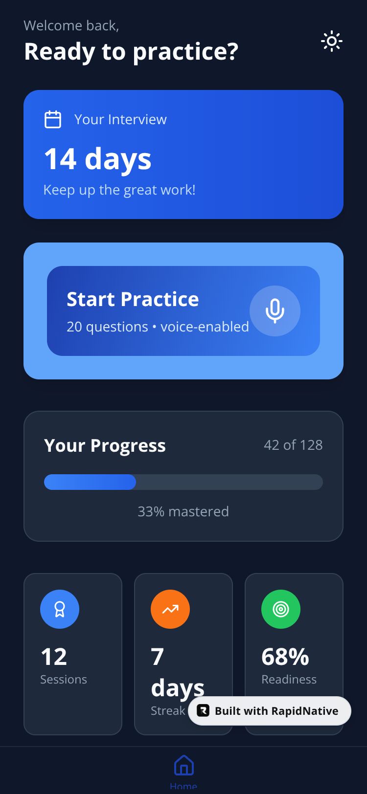 Voice-first US citizenship test prep app with personalized questions, practice sessions, and interview simulation. Master all 128 civics questions with calm, patient guidance.