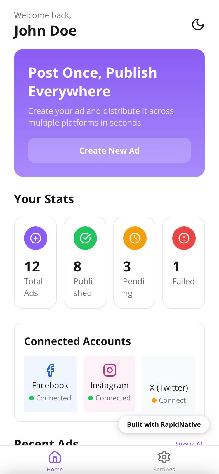 A simple multi-platform ad distribution tool that lets you post once and publish everywhere - Facebook, Instagram, and X.