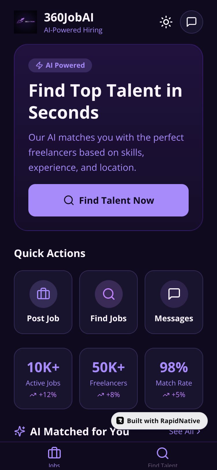 Browse this public project and clone it to start building your own React Native 360JobAI app.