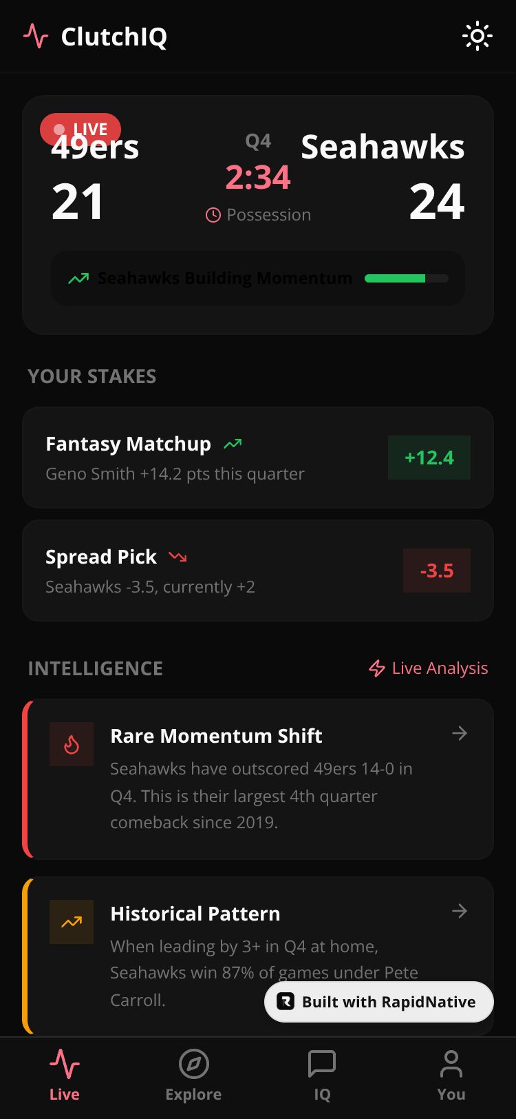 A real-time sports intelligence companion that lives with you, continuously surfacing what matters in your sports life through a dynamic heads-up display.
