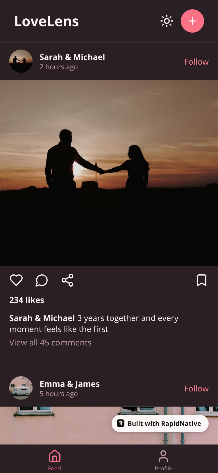 Browse this public project and clone it to start building your own React Native LoveLens app.