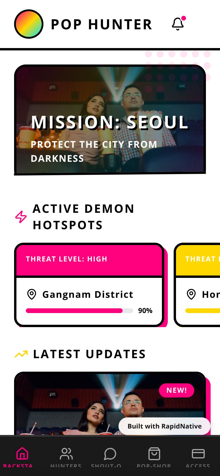 Browse this public project and clone it to start building your own React Native Pop Hunter: Demon Squad Copy app.
