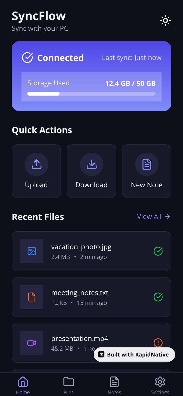 React Native SyncFlow App Preview