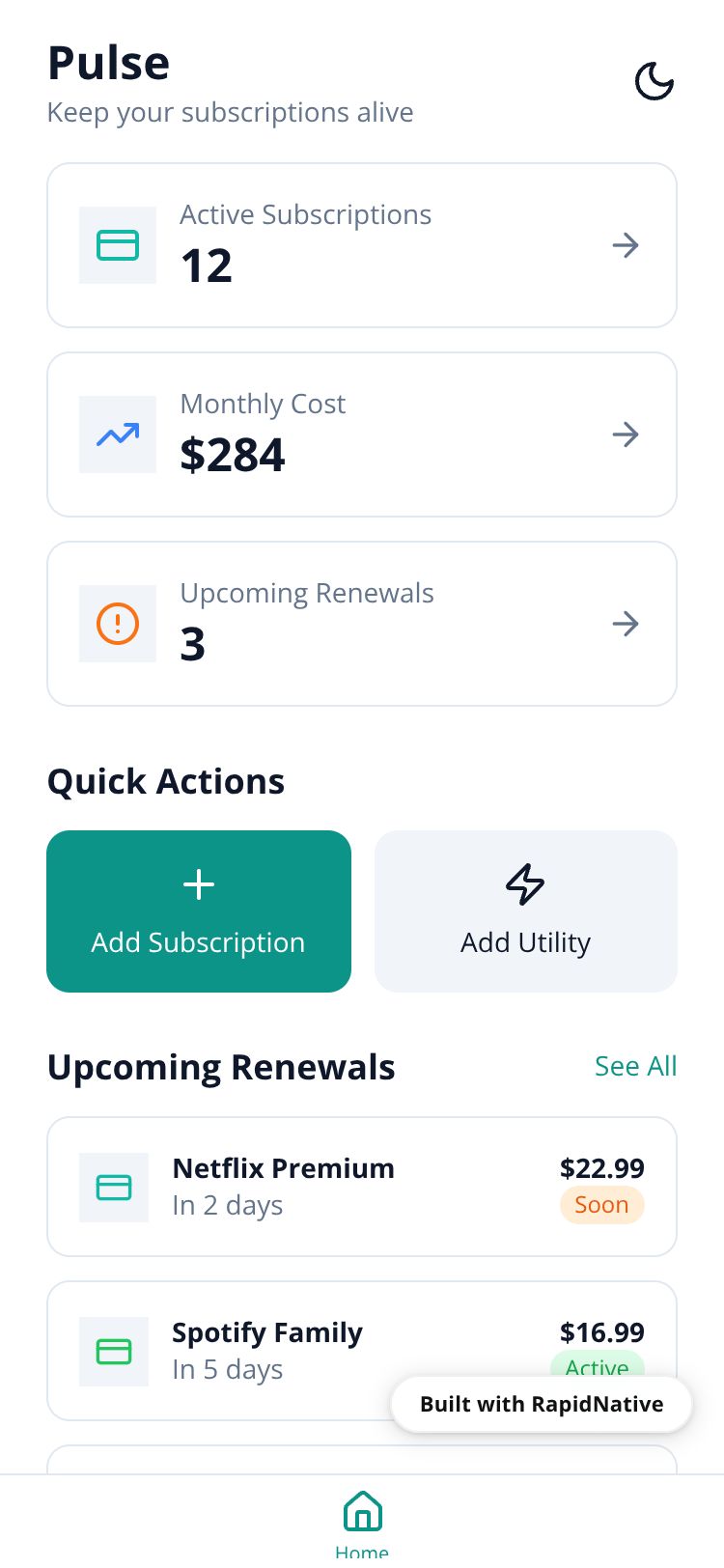 Keep your subscriptions alive and kicking. Manage all your subscriptions and utility accounts in one place.