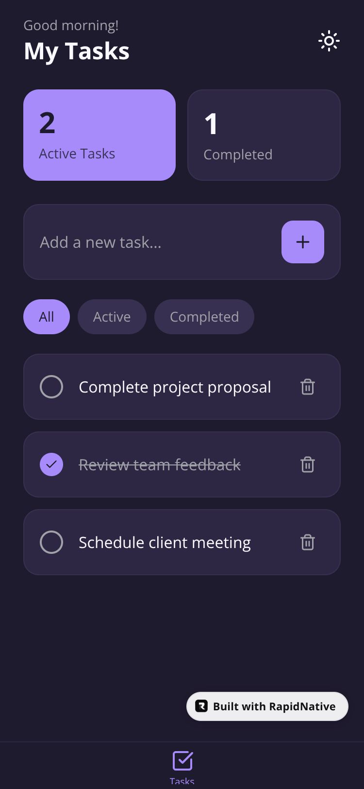 Browse this public project and clone it to start building your own React Native TaskFlow app.