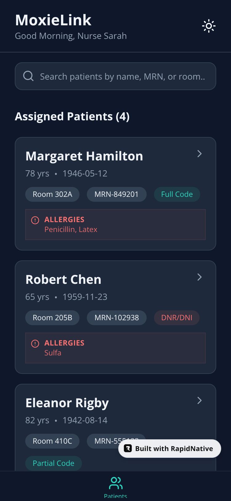 Browse this public project and clone it to start building your own React Native MoxieLink app.