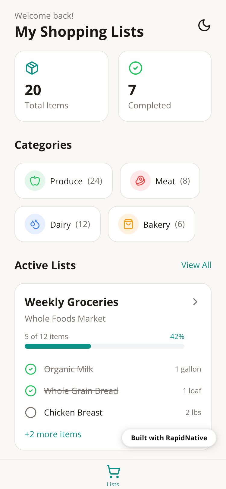Browse this public project and clone it to start building your own React Native ShopList Pro app.