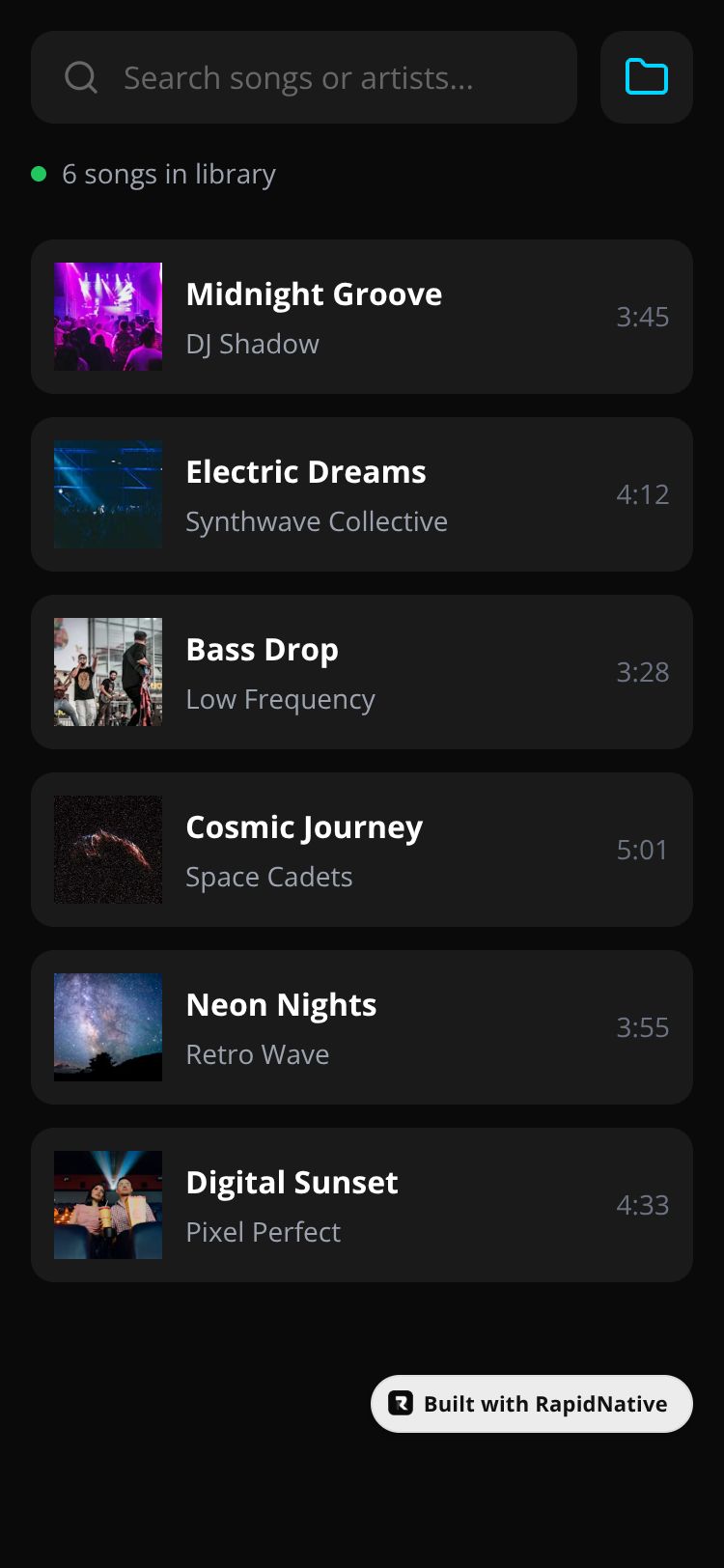 A lightweight offline MP3 player with directory scanning, shuffle playback, and dark mode.