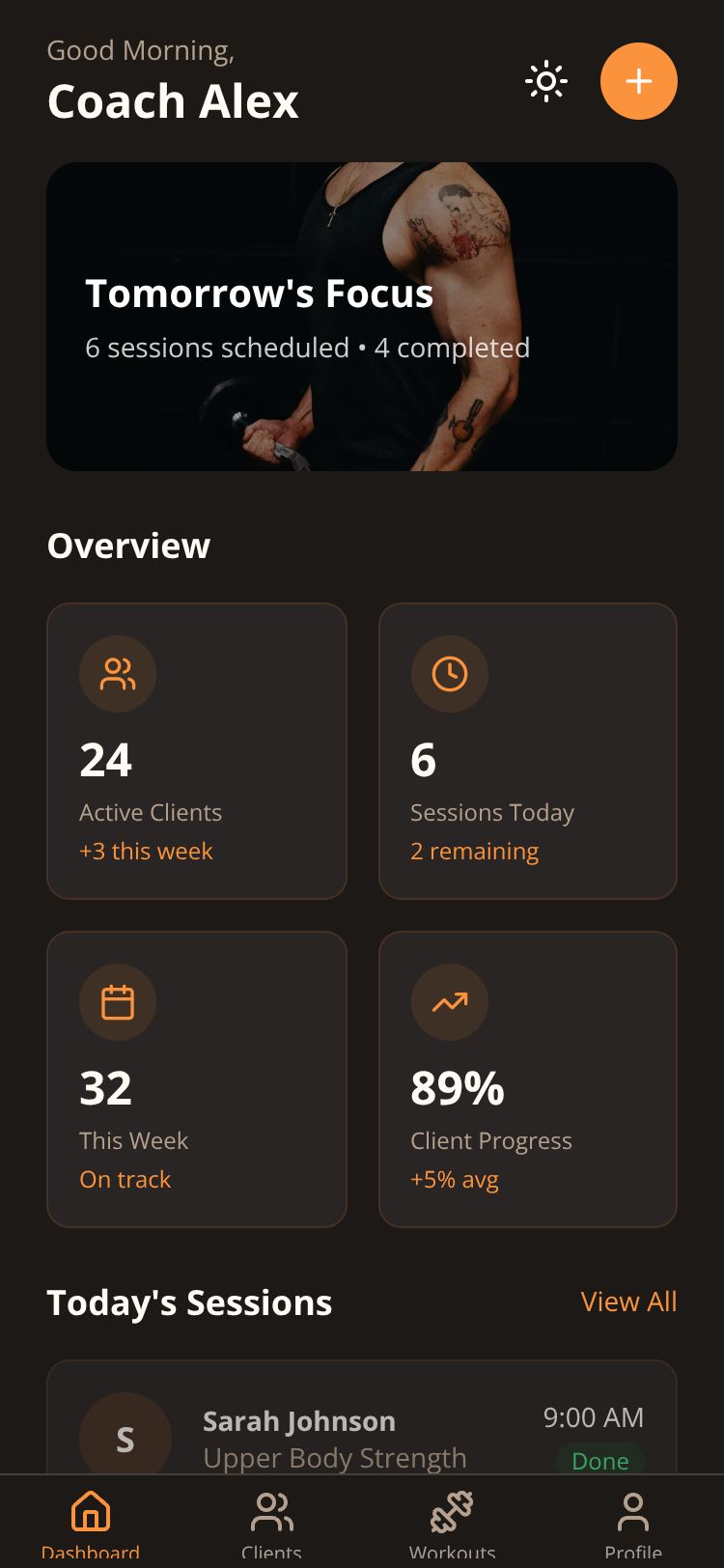 A powerful fitness app for personal trainers to manage clients, create workout plans, and track progress with ease.