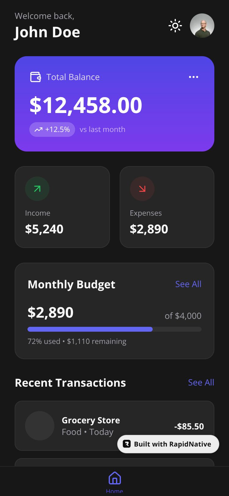 React Native BudgetWise App Preview