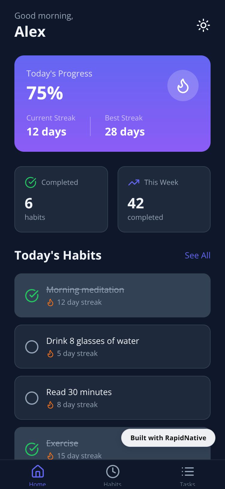 Browse this public project and clone it to start building your own React Native HabitFlow app.