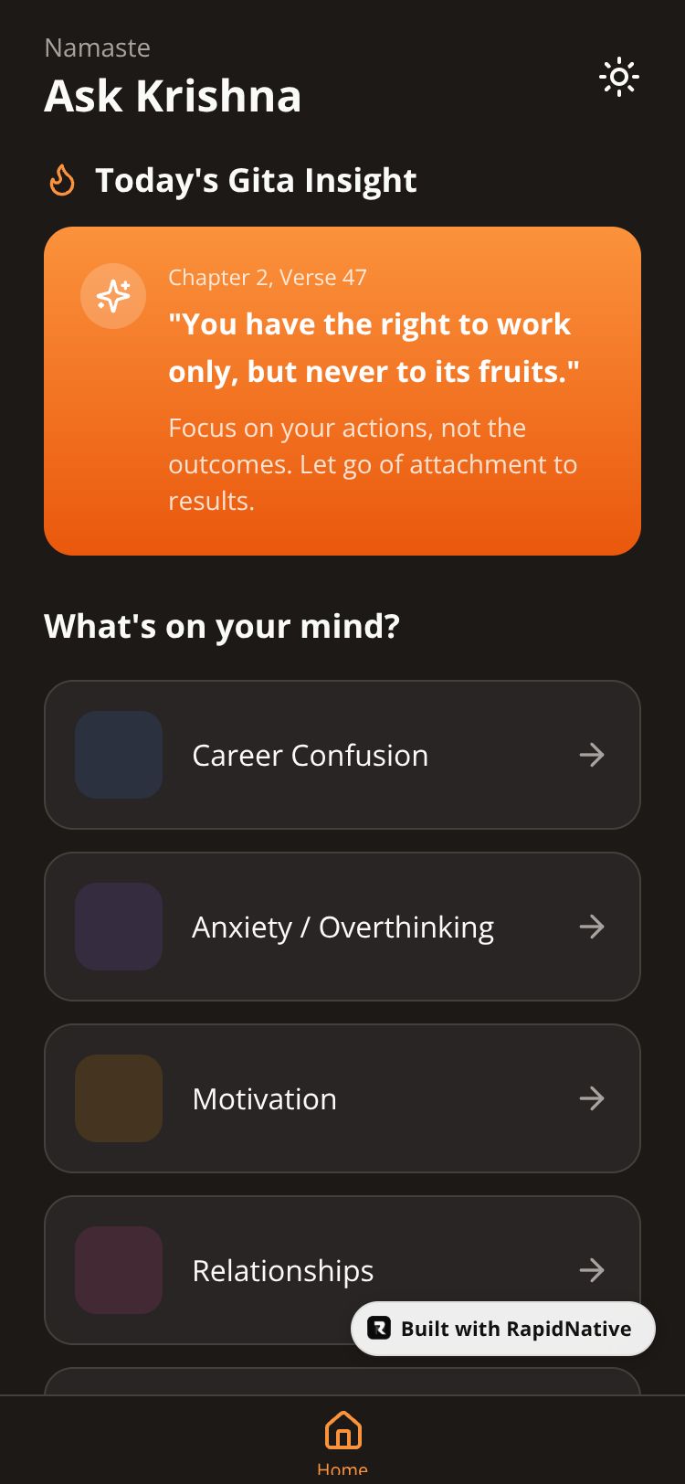 An AI-powered life guidance app inspired by the Bhagavad Gita. Get practical wisdom for career, relationships, anxiety, and more.