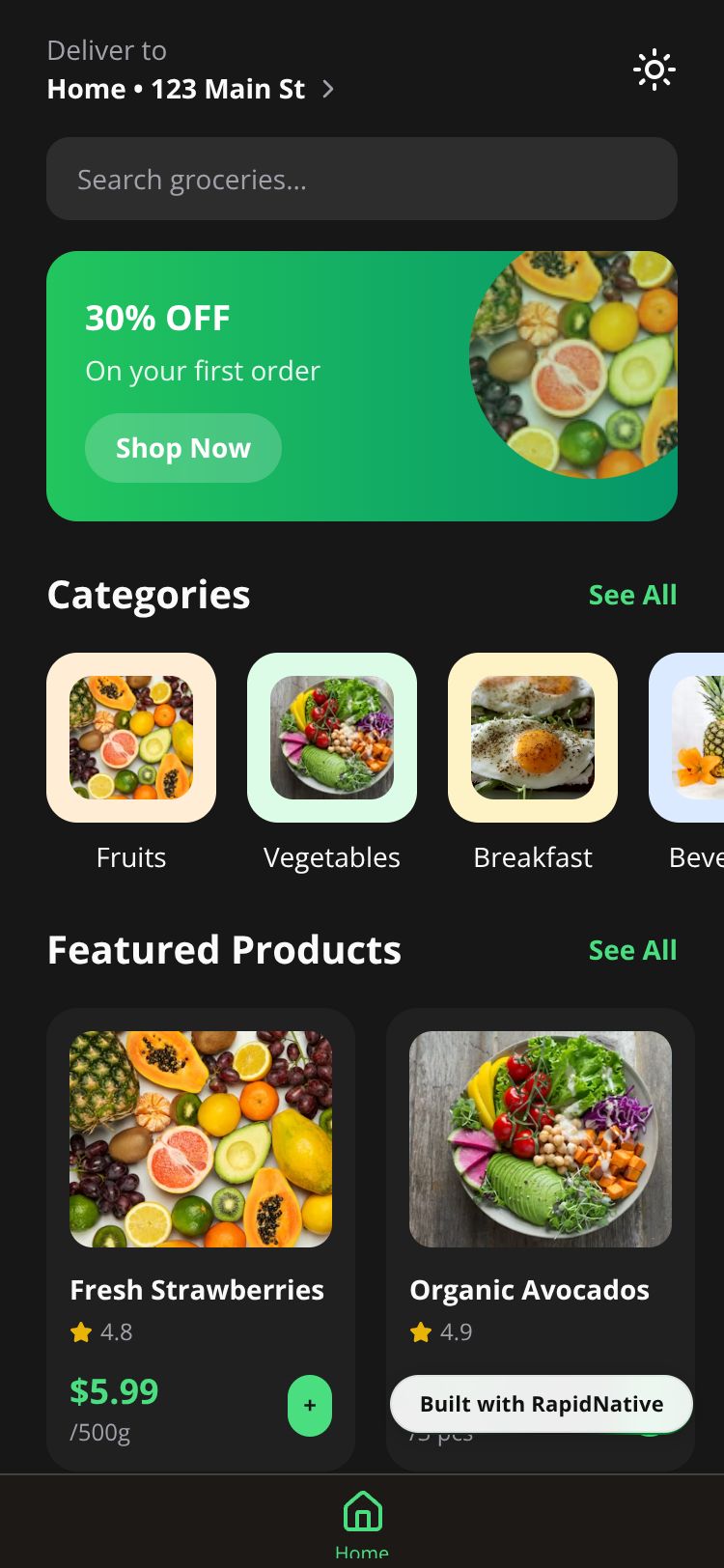 A modern grocery shopping app for buying fresh fruits and groceries with easy booking and delivery.